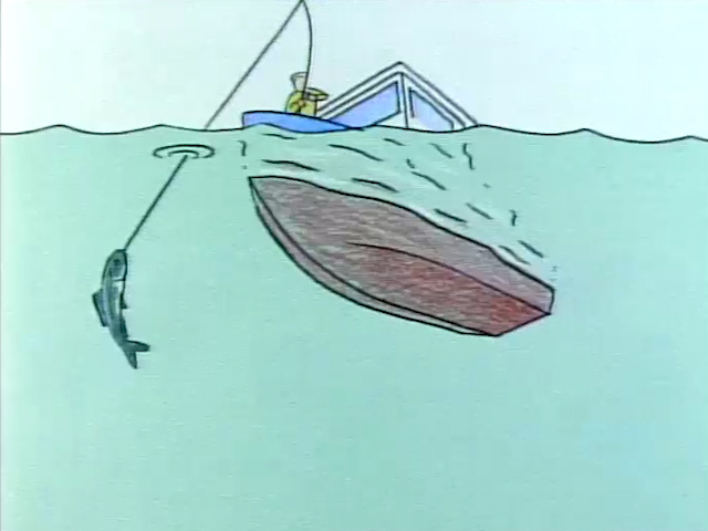 Cartoon | A kid voice-over says, "Ocean," as a fish is seen swimming in the ocean. (First: Episode 2670) |