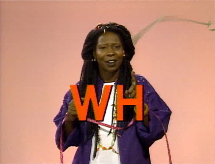 Celebrity | Whoopi Goldberg introduces the sound "WH" and then yells, "Whoopi!" (First: Episode 2861) |