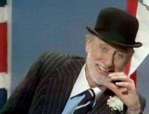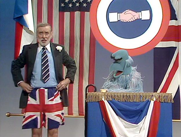 Spike drops trou, revealing UK flag boxers. He sings a patriotic song passage and warbles.
