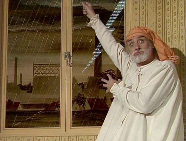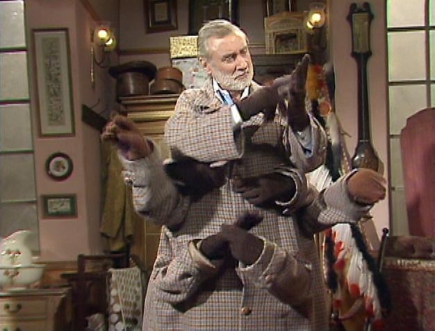 He grinds his fist into the teacup and does more of his wild schtick. Sam is flustered.