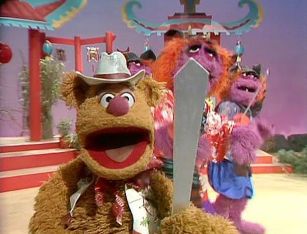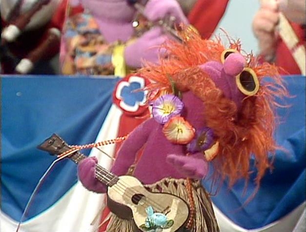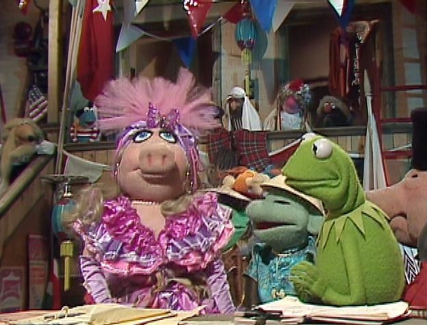 Main stage. Kermit enters to a fanfare.