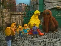 SCENE 3 | As Big Bird begins a Birdketeer meeting in the yard, Lonnell rushes to tell him he's needed for Slimey's trick. Big Bird accepts, but only after the meeting ends. Snuffy, their special guest, proceeds to show the Birdketeers his special dance - the Snuffleupagus, which Lonnell joins them in performing. |