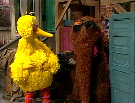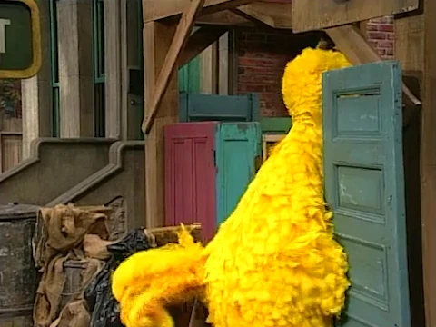 SCENE 2 | Big Bird attempts reciting his poem again. This time, he makes sure to avoid the door frame when he exits... but he bumps into Snuffy, who's going in the other direction. |