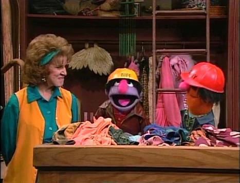 SCENE 5 | Biff and Sully visit Finders Keeps to demonstrate "some," "more," and "all." Biff tosses some shirts for Sully to hold, then more, then the rest until he has all of them. Sully ends up buried in shirts and Biff leaves, wondering where his friend went. |