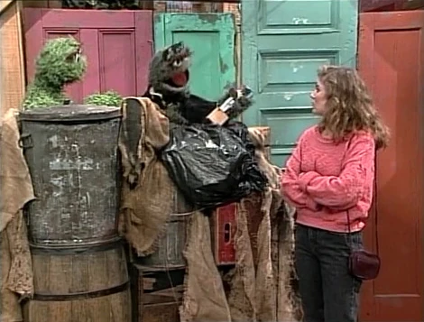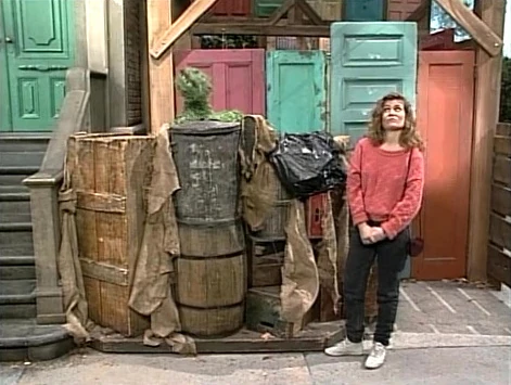 SCENE 2 | Gina waits impatiently for her friend beside Oscar's trash can, and Oscar pops up when he notices how angry she looks that she's going to miss her movie. Right then and there, the scene becomes a ceremony for the "Grouchiest Grouch Awards," hosted by Grouch Valenti. The first award he gives out is the Angriest Grouch award, which almost goes to Oscar until Gina tells Valenti to buzz off, which earns her the award. Oscar is appalled that she got the award and throws a fit. ("I was robbed! I'm the Grouch around here!") |