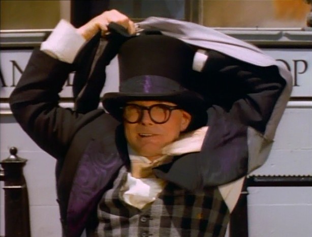 Film | Old Time Movies: Anne Meara observes wondering if the dashing hero will go over or under. (sepia toned) (First: Episode 0517) cut from the Noggin version |