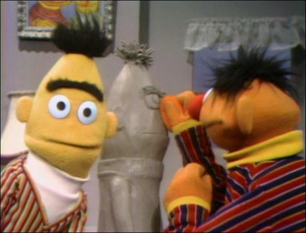 Muppets | Ernie and Bert: Statue of Bert — Ernie makes a clay bust of Bert, but runs out of clay for the nose. (First: Episode 0463) |