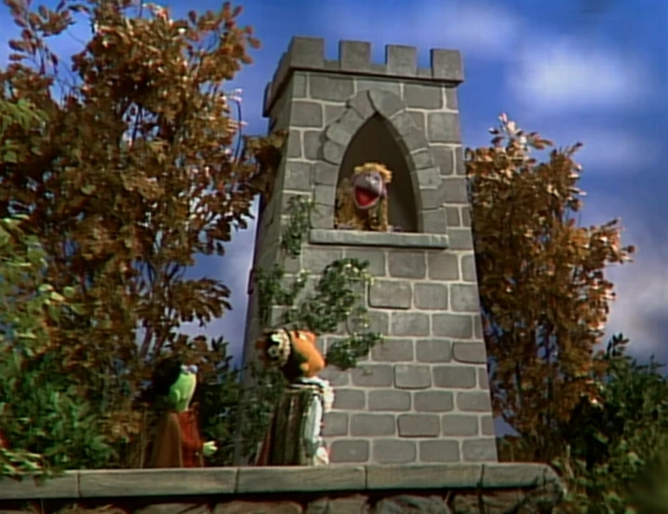 Muppets | Fairy Tale Update Rapunzel is stuck in the tower. Prince Charming knows that he's supposed to tell her to let down something that rhymes with "air," but he can't remember the word and doesn't want the help of Bob, his lackey. The Prince tells Rapunzel to let down her chair, then her stuffed bear, then her hair (but it hurts when he tries to use it as a rope). Finally, the lackey tells Rapunzel to come down the stair, and she runs off with her hero, the lackey. (First: Episode 3133) |