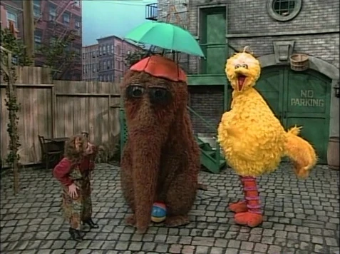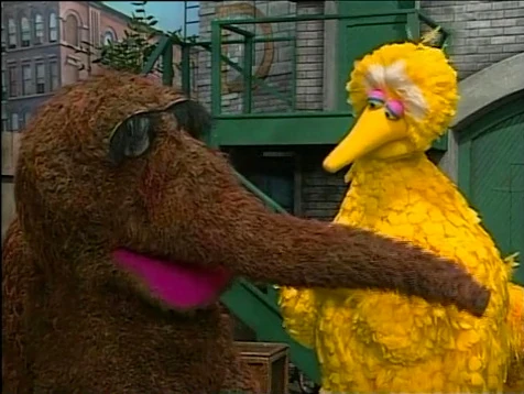SCENE 5 | Snuffy wonders the amazing way Big Bird will announce the sponsors. Big Bird states he'll simply recite them without doing anything (a concept Snuffy still finds amazing anyhow). |