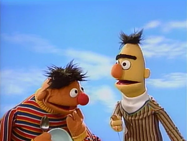 Muppets | Ernie and Bert: Melting Ice Cream Part 4 β When Ernie returns, Bert has finished his ice cream and feels very sorry. But Ernie doesn't mind: the ice cream truck passed by the bus stop, so he bought a new cone for himself. |