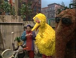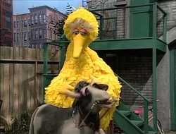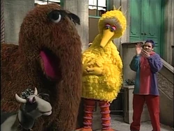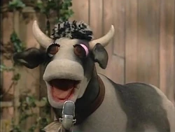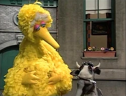 COLD OPEN | As Big Bird announces some of today's sponsors, a cow passes by playing a harmonica. Big Bird is amazed, and follows the cow. |
