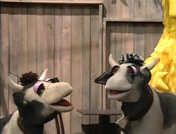 SCENE 2 | Big Bird tells Snuffy about the cow he met when an emcee (Don Reardon) appears and gives an introduction: "And now for your entertainment, here she is direct from her engagement at the Hey Diddle Diddle Improv - the cow who can sound like other animals!" The cow now stands in front of a microphone and tries standup comedy in-between making the sounds of a chicken, a horse, and a rooster. Big Bird and Snuffy cheer her on, but she thinks she can do better. |