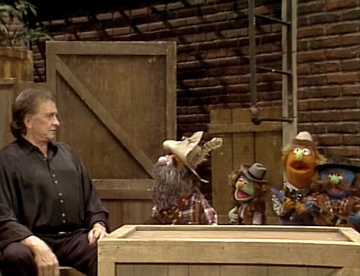 Muppets / Celebrity | Johnny Cash, Noel Cowherd, and some other cowfolk sing "Tall Tale." (First: Episode 2999) |