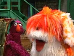SCENE 3 | Telly tries to play his tuba with Barkley, but it doesn't work. After Telly leaves, Rosita tries to play her cymbals with Barkley, but the crashing scares him away. Telly and Rosita confront each other, and they reach a compromise on how to play together. Savion is glad to see they've worked it out. |