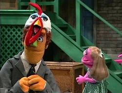 SCENE 4 | Prairie Dawn prepares to talk about being angry when Monty pops up wearing a chicken hat and interrupts her, doing the lesson himself. He causes Prairie to get angry with him, and Monty commends her example of what an angry person looks like. |