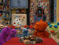 - When Bear exits the living room, the musical cue of "Silent Night" can be heard.
