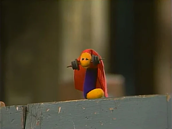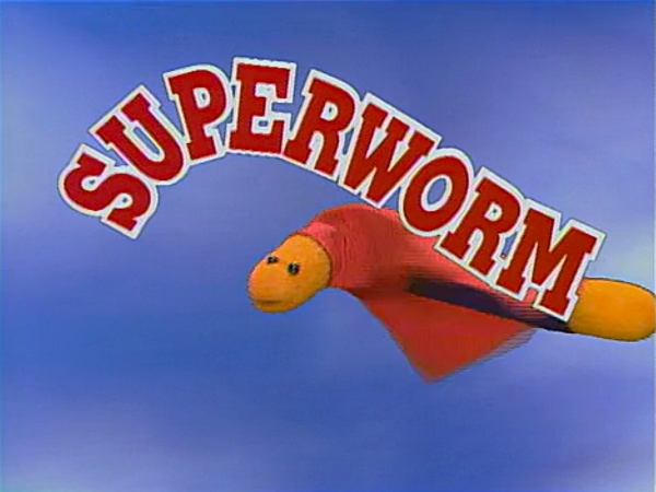 COLD OPEN | As Big Bird swings on the tire swing in the yard, the camera pans up to the sky as a heroic voiceover (Jim Martin) announces today's sponsors. He then announces the presence of SuperWorm, who flies through the air. (New sound effects are added for this airing.) |