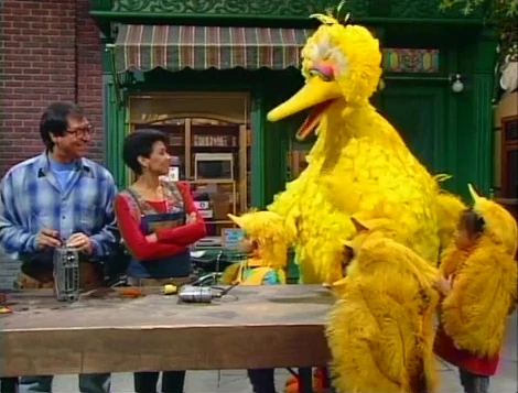 SCENE 1 | Big Bird and the Birdketeers say "hello" to Maria and Luis in Spanish, Chinese, and Swahili. They realize that the grown-ups are too busy working at the Fix-It Shop to hear them say "hellos" all day, so they start saying different "goodbyes" instead. |