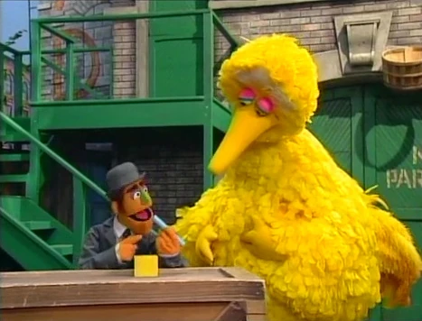 SCENE 6 | Big Bird confirms with Gordon that their friendship means they'd listen to anything the other has to say. Thus, Big Bird "la-las" for Gordon and asks him to repeat it back to him. Big Bird then asks him to listen as he announces the sponsors. |