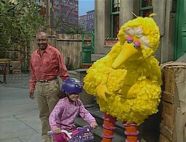 SCENE 6 | Gabi and Luis go up and down the block, while Big Bird follows after. Soon, he lets go and she's able to ride on her own! She suggests that Luis give her training wheels to someone else to use since she doesn't need them anymore, and continues riding as Gordon announces the sponsors. The credits follow. |