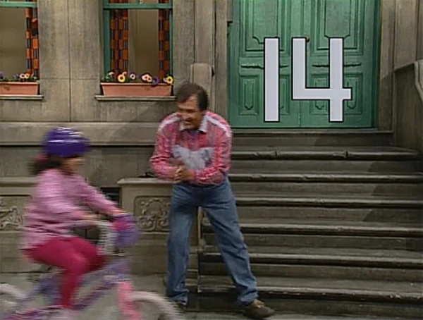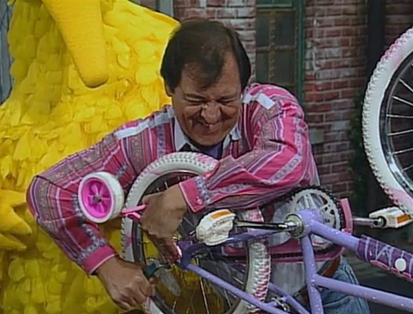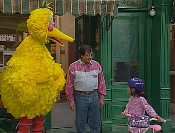 SCENE 2 | Big Bird cooperates with Luis by holding the bike steady while he uses his wrench. This way, he's successfully able to remove the other training wheel! Gabi can now ride her bike, but she claims she must first... say hello to Gordon's new sneakers when she sees him walking by. |