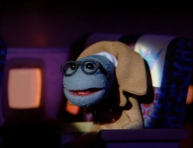 SCENE 4 cont'd | On the plane, Dusty (voiced by John Raitt) imagines what it'll be like to have a child and sings an inner soliloquy. After his song, a flight attendant points out their proximity to Sesame Street and reminds the passengers of their "No Singing" policy. |