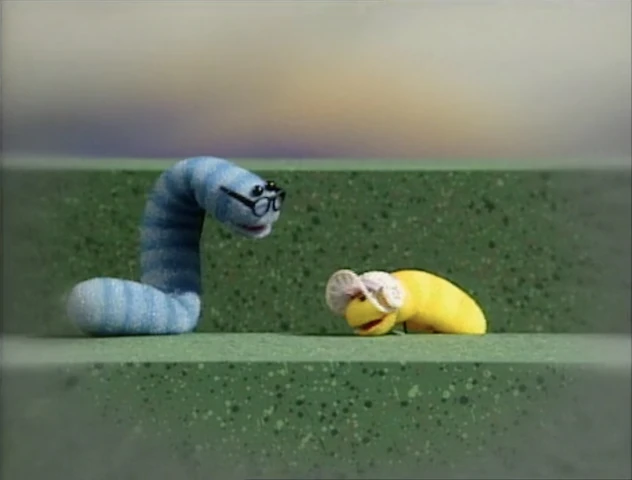 SCENE 5 | Eartha is seated in the car and begins to wriggle back and forth, which everyone learns from the book means that the baby is coming. Maria thinks they should get Eartha to the hospital when another wormgram from Dusty arrives, telling them the same. As suspected, the Sloppy Jalopy won't start and Eartha begins to go into labor. Oscar starts to panic ("I don't know nothin' about birthin' worms!"), but luckily he has another worm birthing book, which instructs them how to help Eartha. Luis frees her from her car seat and Oscar assists her during the process, using his finger for her to push against to aid birth. Maria encourages Eartha to breathe (Luis: "I don't think she went to class.") and POP! It becomes quiet, and Oscar softly observes, "... it's born." After confirming it's a girl, Luis gives Slimey's baby sister her bonnet. |
