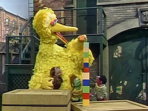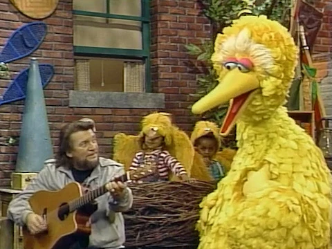 Muppets / Celebrity | Waylon Jennings joins Big Bird in a song about how he built a high block tower. (First: Episode 2850) |