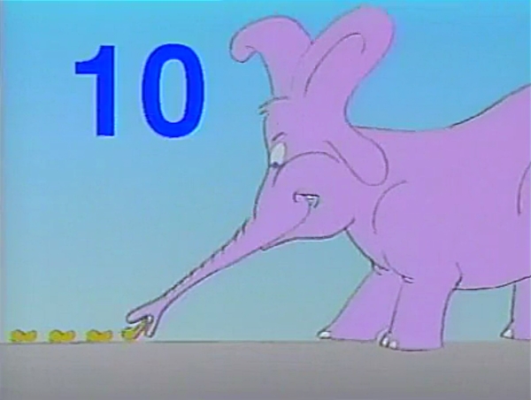 Cartoon | A purple elephant tries to get 10 peanuts in his trunk at once, but can't, so he smushes them into peanut butter instead. (First: Episode 2987) |