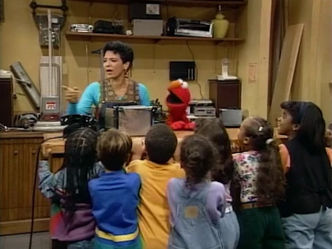 SCENE 1 | Maria works on a toaster at the Fix-It Shop while Elmo asks several questions about the process. Maria tells him he's quite curious and explains what the word means. Elmo asks if everybody can be curious and Maria responds affirmatively, so Elmo calls in a whole slew of kids to assemble and ask endless questions together. |