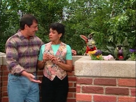 SCENE 1 | Benny Rabbit and Stinky observe Telly playing catch with Gabi, Luis, and Maria in the park. This makes Stinky sad - since he's a plant, he doesn't have a mom or dad to play with. The Rodriguezes offer to take him in as part of their family and Luis sends Gabi home to get a flower pot. Benny remains skeptical, arguing with Telly about whether or not this is a good idea. |