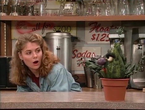 SCENE 3 | Stinky sits atop the Hooper's Store counter, as his new "mom" Gina prepares a BLT for Maria's lunch. Stinky screams in horror when Maria is about to take a bite, pointing out the tomato in her sandwich reminds him of an old friend of his. He tries to brush it off ("Never mind that your lunch could be my little nursery playmate."), but Maria can't go through with it and opts for a hot dog on the corner. Benny sees that he was right once more and heads off to work, when Telly gets another idea - Stinky can stay at The Furry Arms Hotel! |