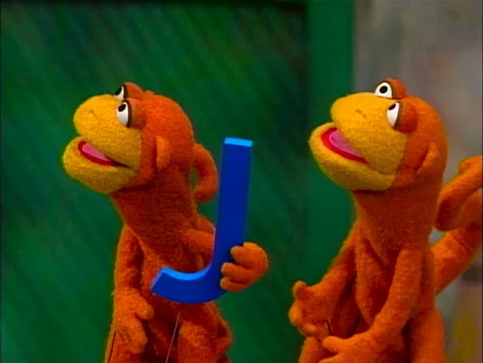 SCENE 5 | Davey and Joey bring Big Bird a letter J to buy, saying he could use it for various words. Big Bird informs the two that all the letters of the alphabet are free, so the monkeys go back to the ol' drawing board. |