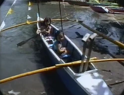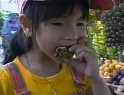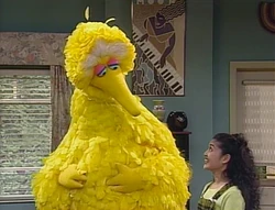 SCENE 2 | Angela plays the next tape in Lexine's collection, where Lexine and her extended family enjoy a day in Nayong Pilipino, a park in the Philippines. The day care gang admire the murals, the animals, and the jeepney that drives Lexine and her family around; she's also shown walking up and down a small volcano and riding a boat called a banca. The activities of the Filipino residents are also seen, and Big Bird even spots some of his own bird relatives! The tape ends with the scenes of Lexine and her cousin riding a tricycle and playing at the playground all in time-lapse, making Big Bird, Telly, and Zoe think that it's funny, although Angela admitted to pressing the wrong button on the remote. |