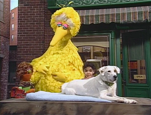 SCENE 1 cont'd | Big Bird eventually comes to the realization that the dog didn't have a name since it didn't have a collar ("I guess you can't remember something you never knew in the first place."). He tries yelling to Gabi and her family to see if the dog's owner has called yet, but is silenced by his surrounding neighbors trying to sleep. |