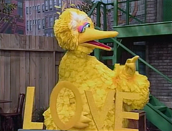 SCENE 5 | The word watcher thanks the TOY, who happily hops away. She is now ready to move onto her next word - The Yellow, Loves To Giggle LOVE. She goes off making its giggling call and Big Bird announces the sponsors. The LOVE (Stephanie D'Abruzzo) then appears and Big Bird calls the word watcher. The credits follow. |