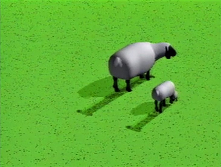 Cartoon | CGI sheep graze out I and i. (First: Episode 2896) |