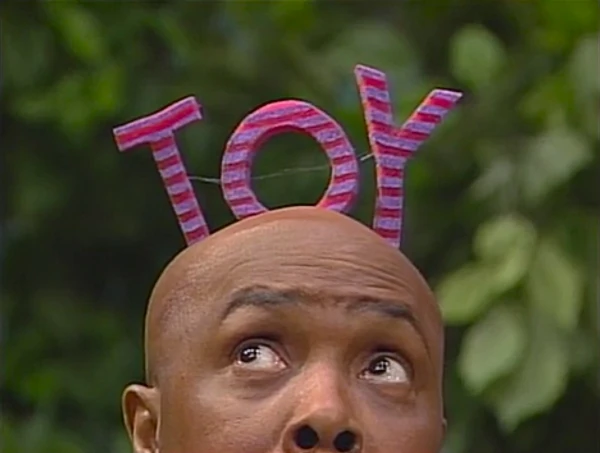 SCENE 2 | While Gordon reads in the park, Big Bird and the word watcher continue to look for the elusive TOY. Gordon then notices the word TOY crawling up his arm and onto his head. They compare it to the picture and learn it's not the TOY they're looking for; it is in fact the Purple-Striped, Head Napping TOY (Jim Martin), who begins to take a nap on Gordon's head. The word watcher takes its photo and heads back on her quest, while Gordon is told the TOY's naps last about an hour. |
