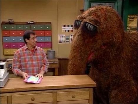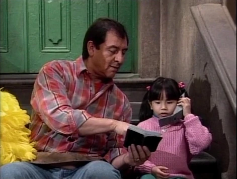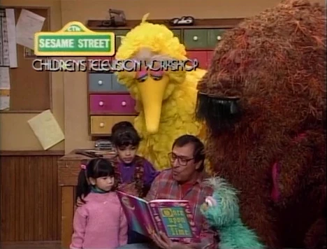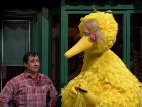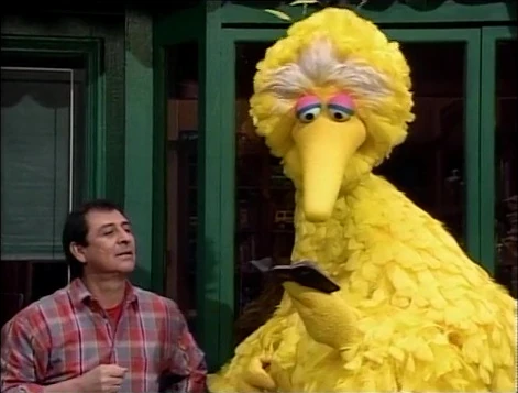 SCENE 3 cont'd | Big Bird happens by and Luis asks him to read the number, though Big Bird isn't sure what an F looks like. Luis points him toward some films... |