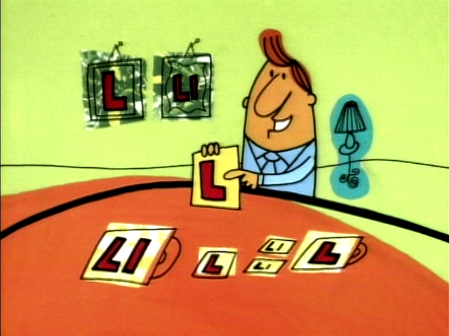 Cartoon | A salesman (voice of Martin P. Robinson) hawks the letter L in a commercial. Artist: Mo Willems (First: Episode 3306) |