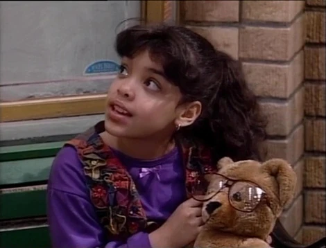 SCENE 5 | Big Bird, Snuffy, Rosita, and Lexine find Gabi around the corner playing with Luis' glasses, putting them on her teddy bear. They inform her of his troubles and they go to return them, wondering if Luis will be angry with Gabi. |