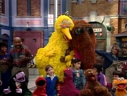 SCENE 2 | Gordon, Celina, Elmo, Susan, Miles, Bob, Linda, and Barkley surround Big Bird and remind him of whom each of them are. Big Bird repeats what he learns about each one during the process, but sadly none of the information completely sinks in and he gets everyone's names mixed up, believing they live on "Barkley Street." He wonders why everybody's helping him and re-learns what "love" is; Gordon suggests they take Big Bird to more people and things that he loves. |