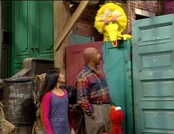 SCENE 1 | Elmo makes his way to Big Bird's nest to have a playdate with Big Bird. He knocks on his door, but instead Gordon and Celina answer. They tell Elmo that Big Bird has come down with an illness only six-year-old eight-foot-tall yellow birds can get: a case of the "memory flu" (as in his memory flew away). They remind Elmo of what one's memory does, and that despite not showing any usual symptoms of being sick, Big Bird can't remember anyone or anything. Elmo doesn't quite understand until Big Bird peers over his doors and acts like he's never met Elmo before, calling him a "furry red thing." Celina explains that the doctor had said the only way to get Big Bird's memory back is to surround him with his loved ones. Elmo wants to get underway with a plan right now. |