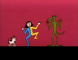 Cartoon | A dog, a girl and a lizard dance to a bongo beat. Artist: Karen Aqua (First: Episode 2795) |