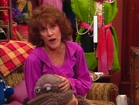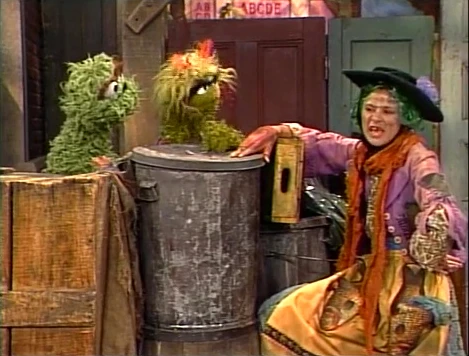 Muppets / Celebrity | Fish seller Trasha (Tracey Ullman) gives some grouchy voice lessons to Grundgetta while Oscar watches. They are shocked to learn Trasha wasn't always so grouchy and flashes back to her mentor, Professor Piggins (played by a Cockney Oscar). He teaches her a grouchy song - "Grouches in the South of France." After the flashback, Grundgetta begins to get the hang of the accent. (First: Episode 2584) |
