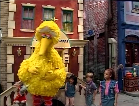 SCENE 1 | Big Bird, Matthew, Noemi, and Carisse greet Benny, who refuses to tell them what day it is... which makes them curious. The only clues he gives are that it's a day that comes only once a year, and that it's someone's birthday. But whose birthday is it, they wonder? Gina's? Ruthie's? Barkley's? They pry more clues out of Benny, who says that the one with the birthday has long ears and a little hat, and works in a hotel. They finally figure out that it's his birthday, but he makes it clear that he doesn't want a surprise birthday party. When he leaves for downtown to get some socks, Big Bird and the kids agree that maybe he does want a surprise party, and decide to make one for him. |