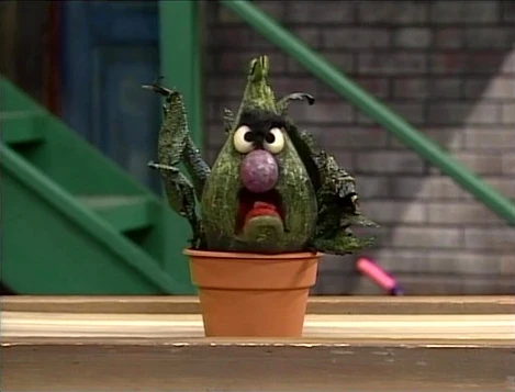 SCENE 5 | Stinky, inspired by the previous segment, decides to get a toothbrush for Benny. But how can a plant get a toothbrush if plants don't walk? "I wish I was a creeper," he groans after trying to hop to Hooper's Store. |