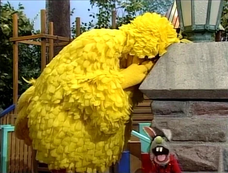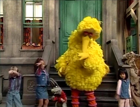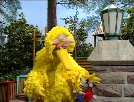 SCENE 4 | Big Bird and the kids are playing hide-and-seek in the park - at least, that's what Benny thinks they want him to believe. He thinks they're hiding so they can jump out and surprise him with a party. Big Bird finishes counting to 40, and calls out, "Anyone around my base is it!" Benny attempts to sabotage their supposed plan by jumping out and yelling "Surprise!" but Big Bird just tags him. Benny remains confused, but gives in to their game and starts counting while Big Bird and the kids hide. |