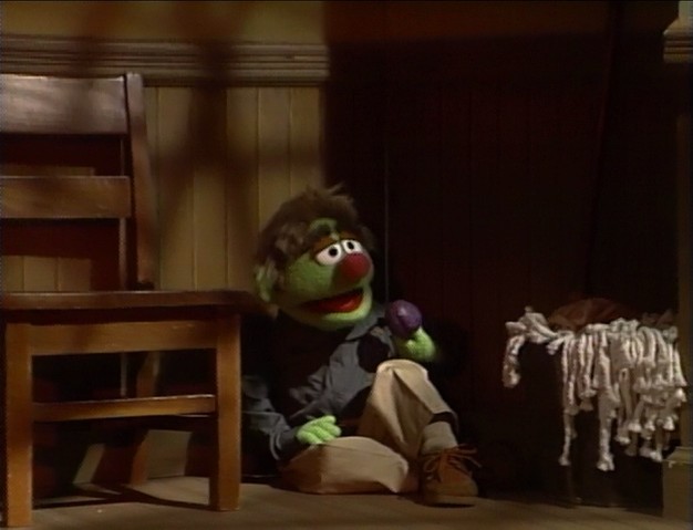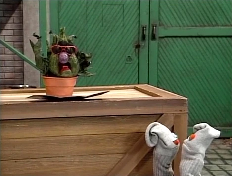 When Gina leaves, Stinky ponders what present he'll give Benny. He decides on a pair of socks, when suddenly a pair of sentient Muppet socks arrives in front of him! He turns them down, deciding that "socks aren't special enough." |