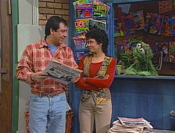 SCENE 1 | Gordon and Susan are in a hurry to catch the train when Gordon stops at the newsstand to pick up a newspaper, only to find that all the newspapers have smelly fish in them. Oscar is the culprit, and reveals that he bought the newsstand so he can yell at subway riders coming from the station and make others late for their trains. Susan believes that since a Grouch now owns the newsstand, all the papers will have fish. Oscar points Gordon to the stack of newspapers that don't have fish... but have plenty of mud. |
